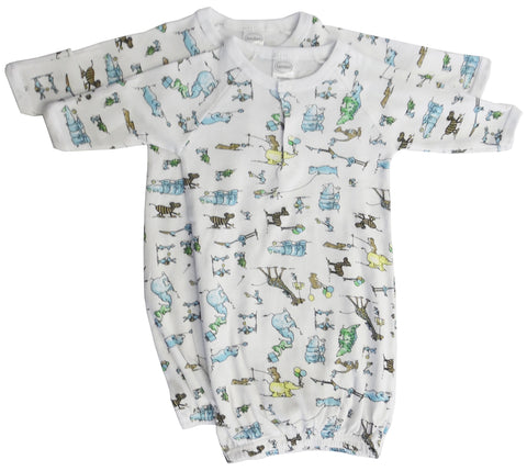 Boys' Infant Gown With Long Sleeve with Mitten Cuffs are the best way to keep your little one warm all night long; especially in the Autumn and Winter months. WIth the built-in mittens his hands will be kept nice and toasty so you can even have him bundled up in it for any outdoors time in th evening. Covered Elastic Bottom. 100% Cotton. 1x1 Rib Knit. Size: One Size. Colors: Assorted Pastels and Prints 2 Per Pack. NOTE: Patterns shown are for illustration purposes only. You may receive a different pattern in the color you select.