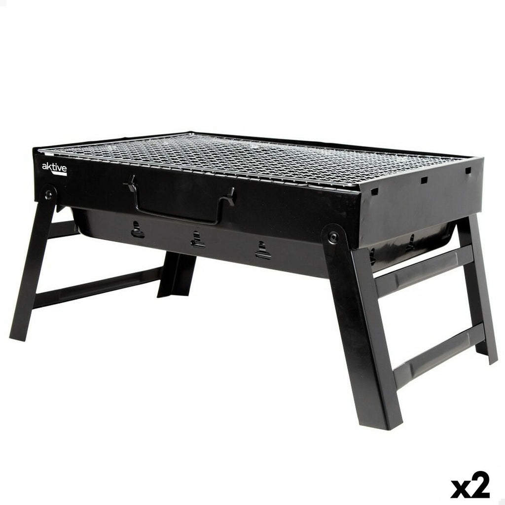 Barbecue Portable Aktive Rectangulaire Noir 50 x 23 x 30 cm (2 Unités)